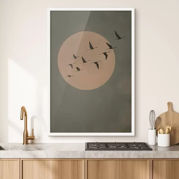 Poster Lindude parv lendab suure sooja kuu taustal Nr f46162