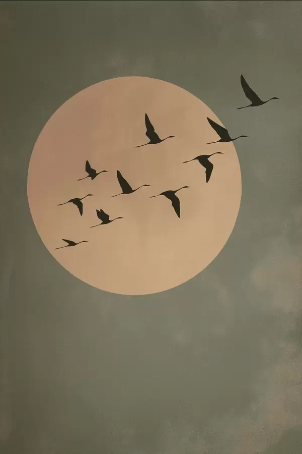 Plakat Lindude parv lendab suure sooja kuu taustal f46162