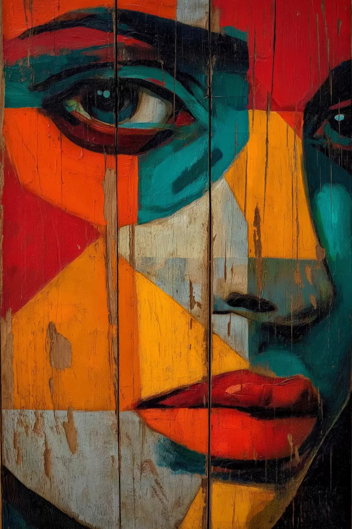 Plakat Ere geomeetriline näoportree puidust tahvlitel f46165