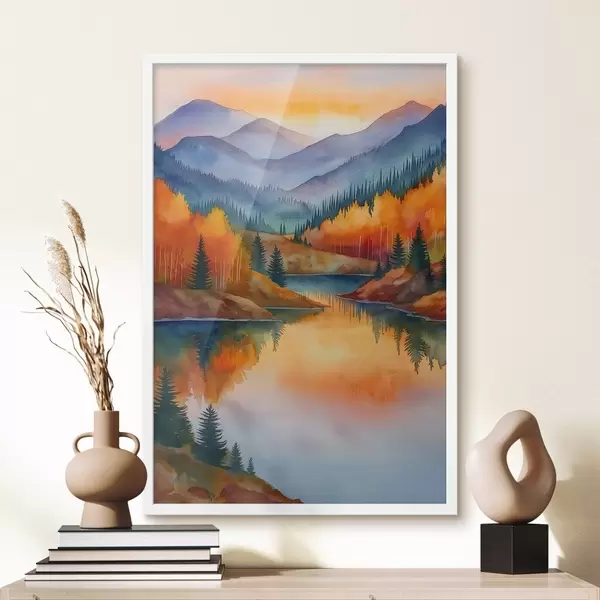 Poster Sügisene maastik, kus mäed peegelduvad rahulikus järves Nr f46174