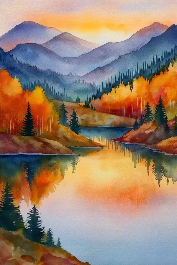 Poster Sügisene maastik, kus mäed peegelduvad rahulikus järves Nr f46174