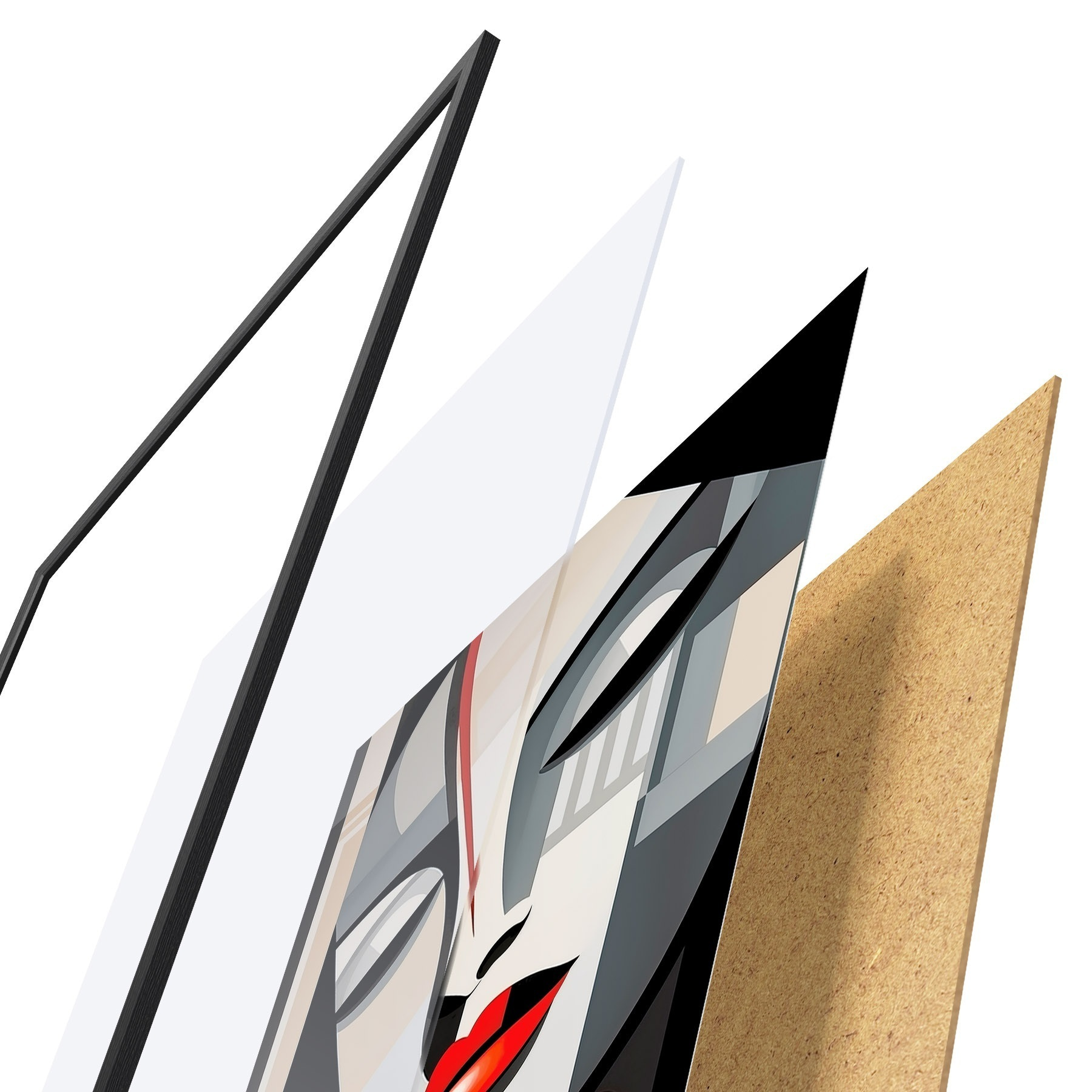 Plakat koosneb raamist, pleksiklaasist, trükitud pildist ja puitlaastplaadist alusplaadist. Tänu tagaküljel olevatele kinnitustele saab plakati kohe seinale riputada.