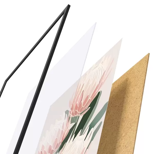 Plakat koosneb raamist, pleksiklaasist, trükitud pildist ja puitlaastplaadist alusplaadist. Tänu tagaküljel olevatele kinnitustele saab plakati kohe seinale riputada.