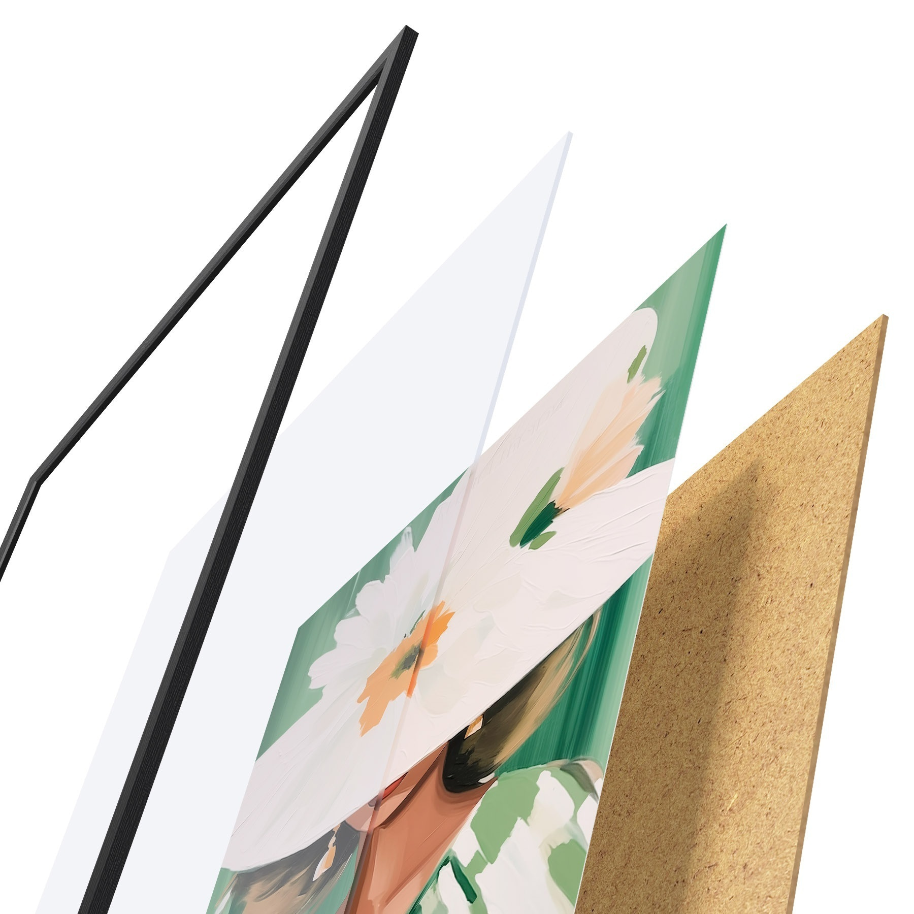 Plakat koosneb raamist, pleksiklaasist, trükitud pildist ja puitlaastplaadist alusplaadist. Tänu tagaküljel olevatele kinnitustele saab plakati kohe seinale riputada.