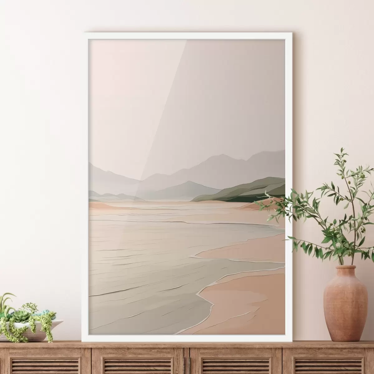 Plakat Minimalistlik maastik mägedega ja rannikuga f46248
