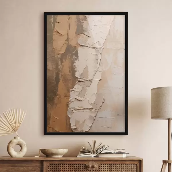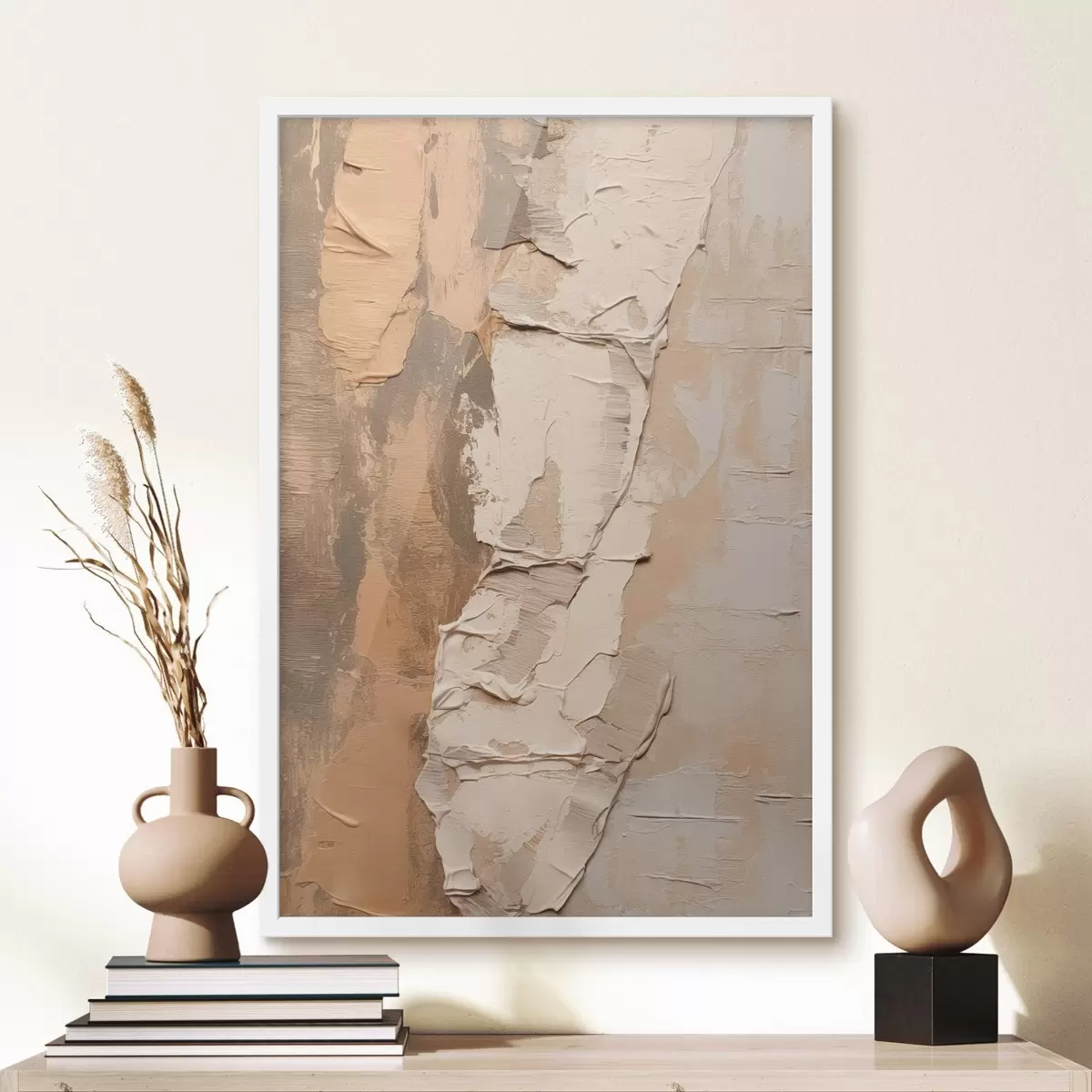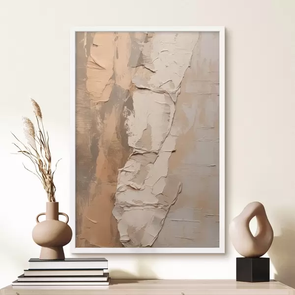Plakat Abstraktne maal paksude pintslitõmmetega, beežide ja pruunide toonidega, tekstuurse pinnaga, neutraalsete värvidega f46272