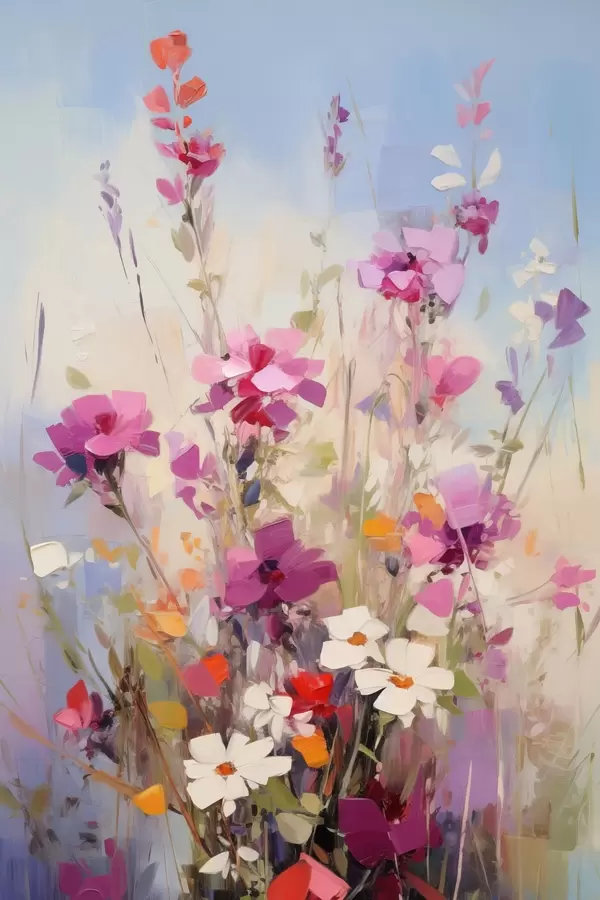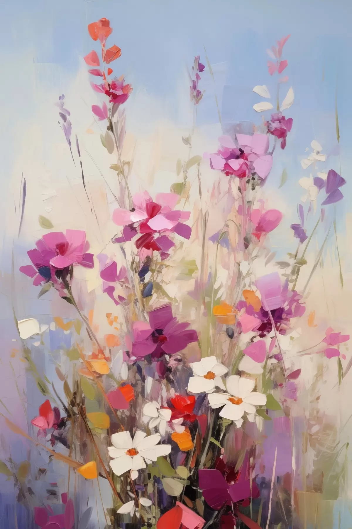 Plakat Ere roosa, valge ja roheline lill pehme pastellvärvilise taustaga f46278