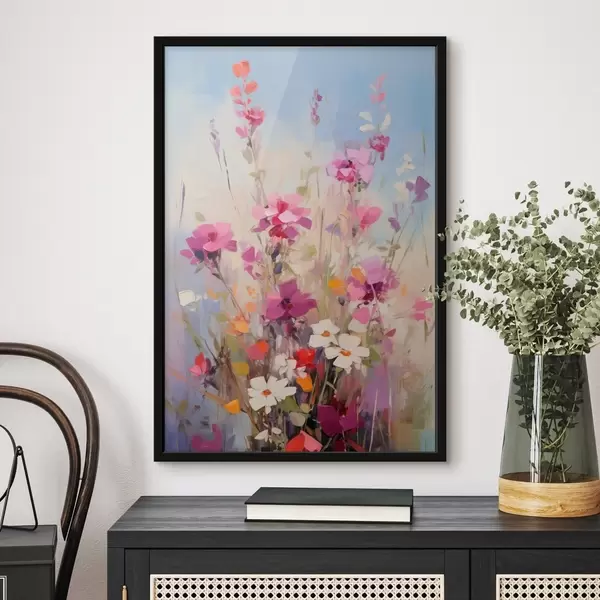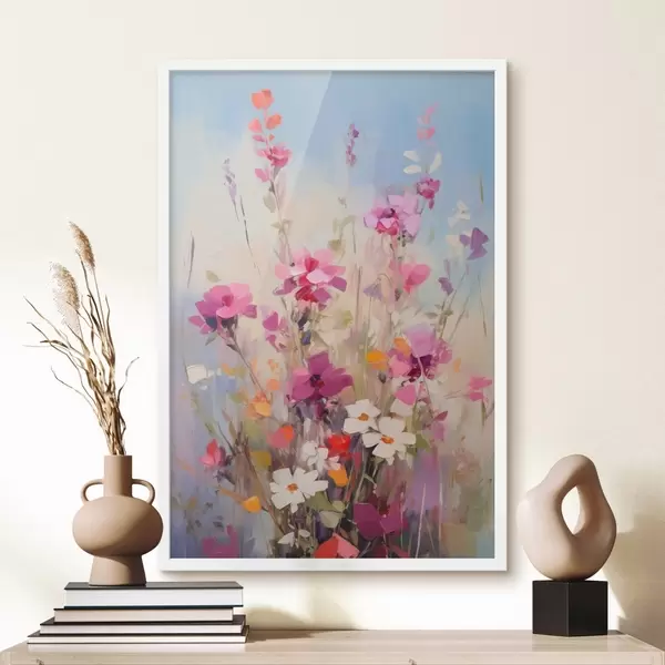 Poster Ere roosa, valge ja roheline lill pehme pastellvärvilise taustaga Nr f46278