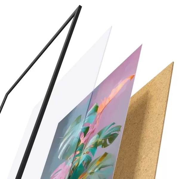 Plakat koosneb raamist, pleksiklaasist, trükitud pildist ja puitlaastplaadist alusplaadist. Tänu tagaküljel olevatele kinnitustele saab plakati kohe seinale riputada.