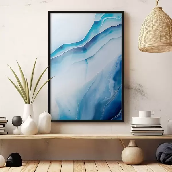 Plakat Abstraktne sinine ja valge ahhaatprint, keerlevad jooned ja gradientid, sile tekstuur, modernne kunst, minimalistlik f46291