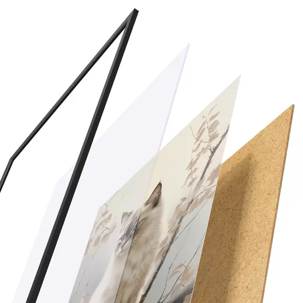 Plakat koosneb raamist, pleksiklaasist, trükitud pildist ja puitlaastplaadist alusplaadist. Tänu tagaküljel olevatele kinnitustele saab plakati kohe seinale riputada.