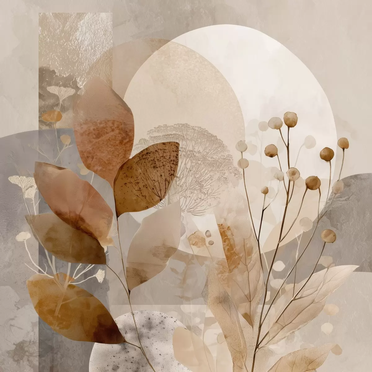 Plakat Beige ja pruuni värvi lillemustriga f46308