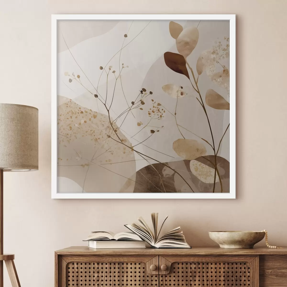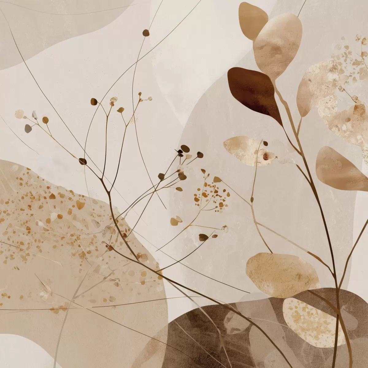 Plakat Abstraktsed kujundid ja taimemotiivid beežides toonides f46309