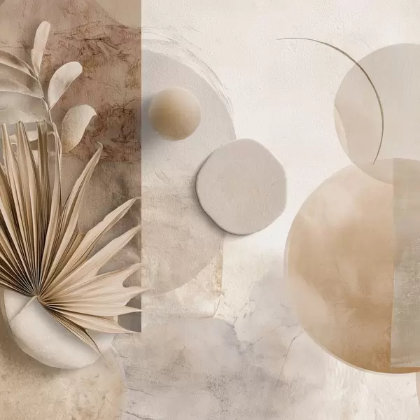 Poster Kuivatatud palmilehed ja 3D-ringid beežides toonides Nr f46310