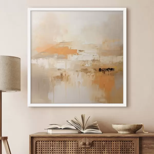 Poster Maastikku abstraheeriv õlimaal oranžide ja beežide toonidega Nr f46314