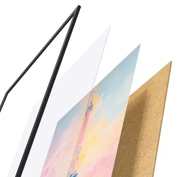 Plakat koosneb raamist, pleksiklaasist, trükitud pildist ja puitlaastplaadist alusplaadist. Tänu tagaküljel olevatele kinnitustele saab plakati kohe seinale riputada.