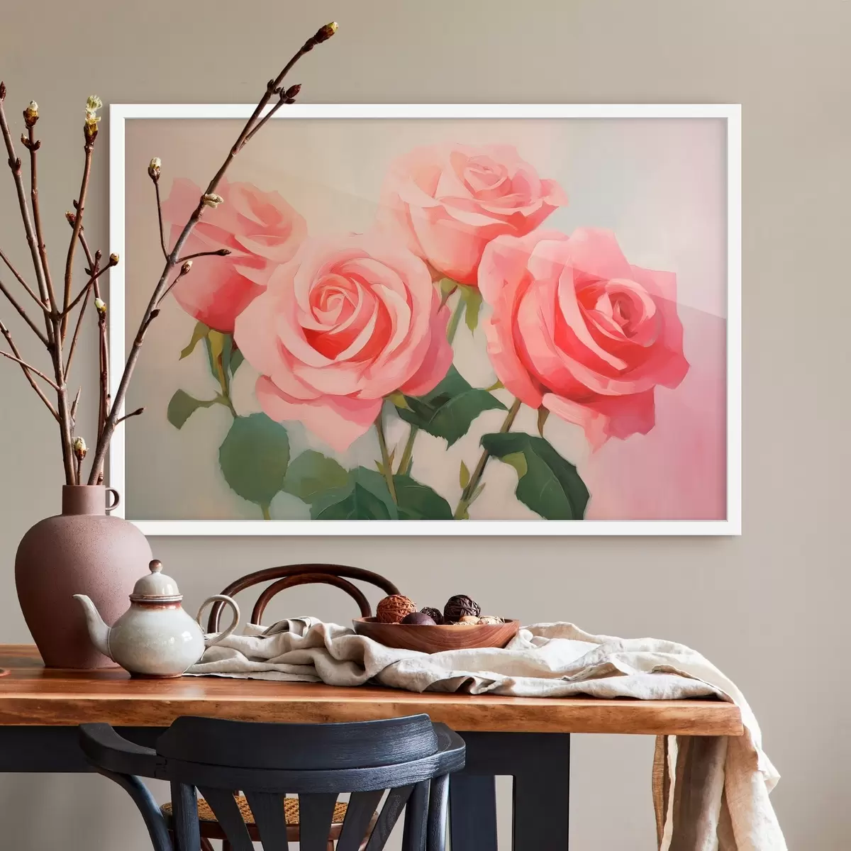 Me müüme pilte kanderaamidel - see on puidust raam, millele lõuend on pingutatud. Seda pilti ei ole vaja raamida, seda võib riputada otse seinale.