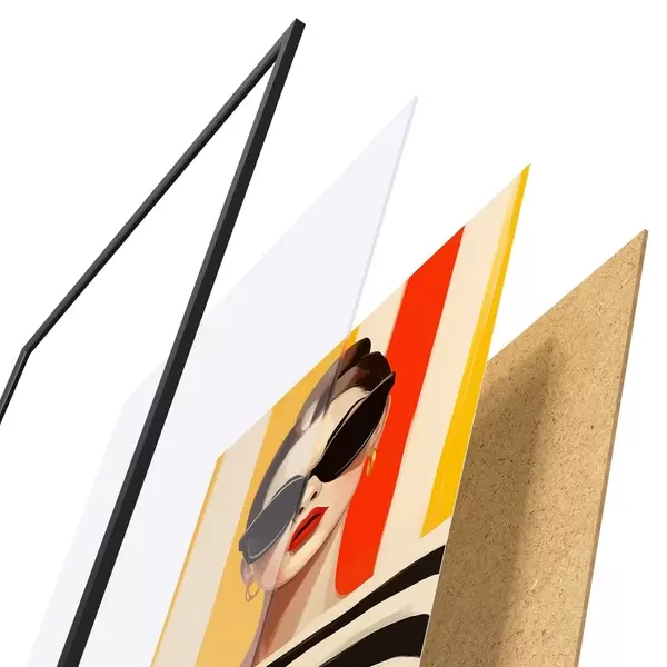 Plakat koosneb raamist, pleksiklaasist, trükitud pildist ja puitlaastplaadist alusplaadist. Tänu tagaküljel olevatele kinnitustele saab plakati kohe seinale riputada.