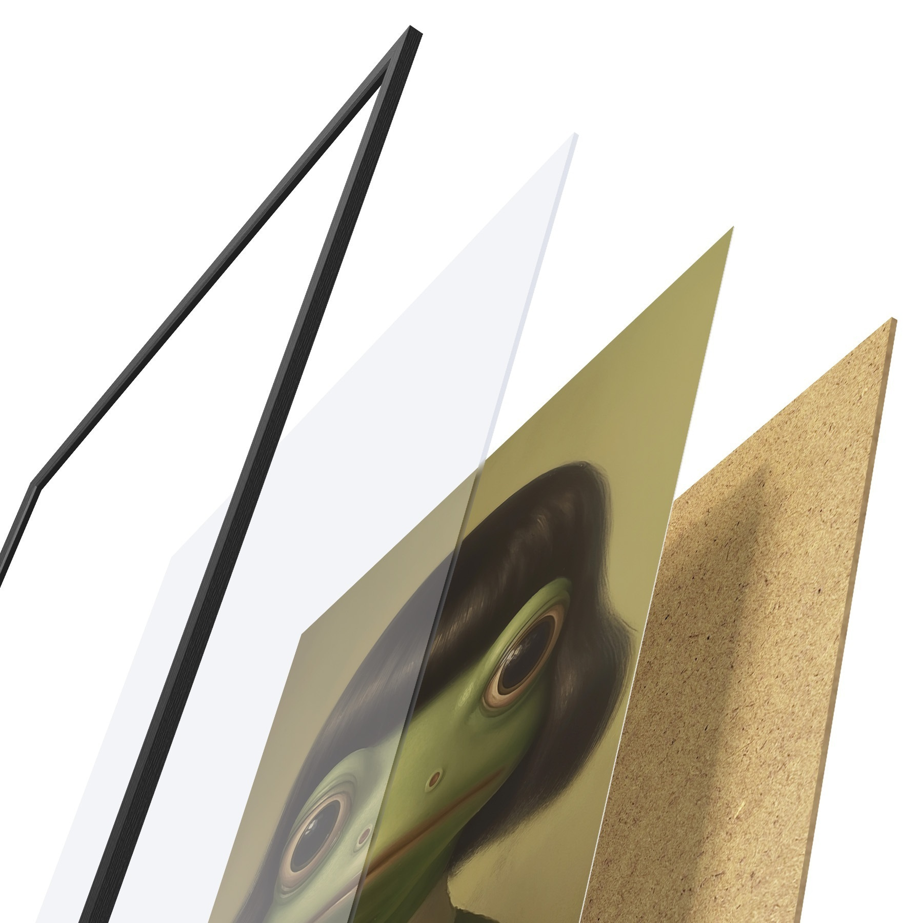 Plakat koosneb raamist, pleksiklaasist, trükitud pildist ja puitlaastplaadist alusplaadist. Tänu tagaküljel olevatele kinnitustele saab plakati kohe seinale riputada.