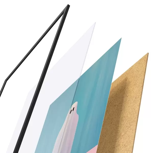 Plakat koosneb raamist, pleksiklaasist, trükitud pildist ja puitlaastplaadist alusplaadist. Tänu tagaküljel olevatele kinnitustele saab plakati kohe seinale riputada.