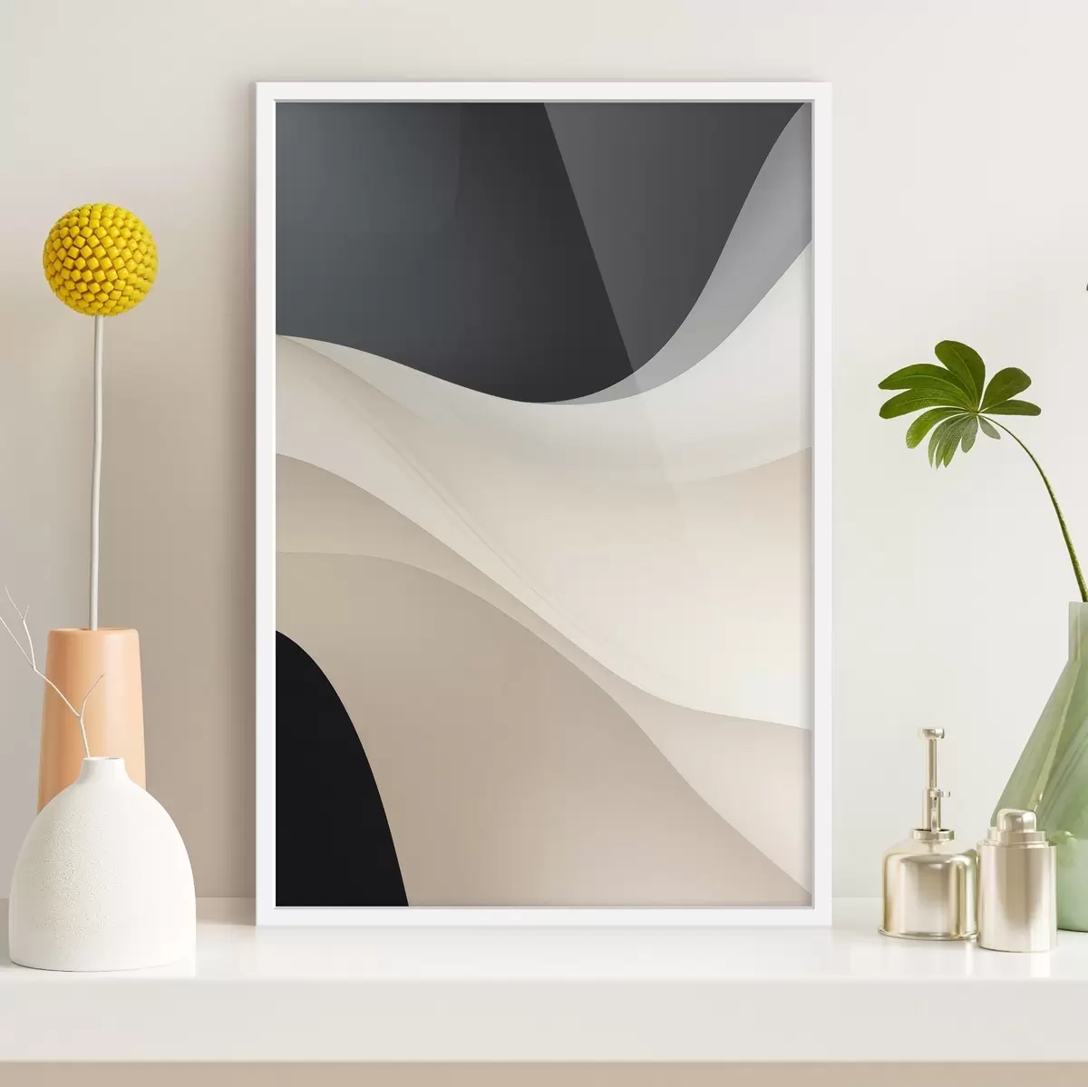 Poster Mustad, kreemikad ja hallikaspruunid kihilised voolavad kõverad Nr f46492