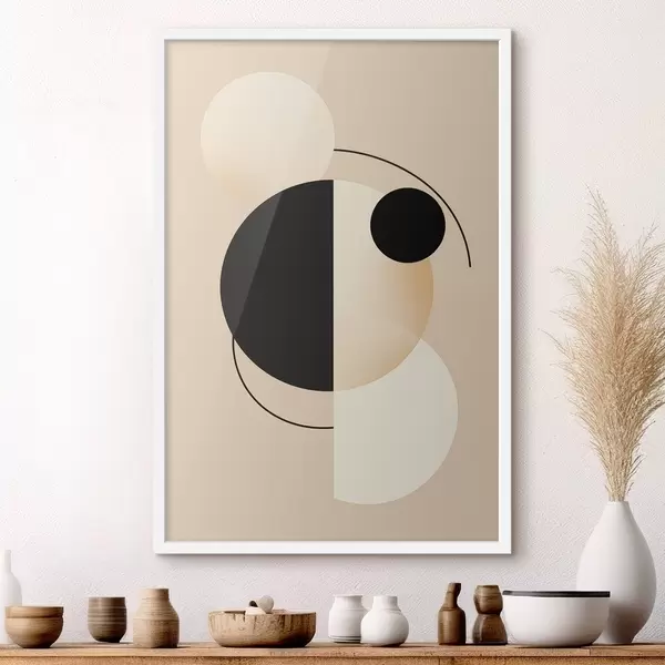 Plakat Graafilised ringid ja kaared pehmes beežis ja mustas f46497