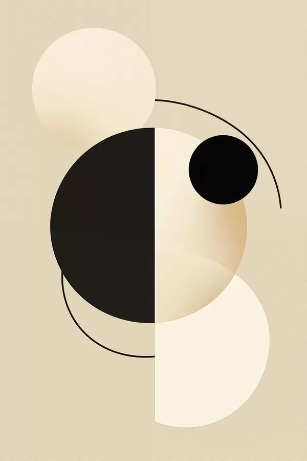 Poster Graafilised ringid ja kaared pehmes beežis ja mustas Nr f46497
