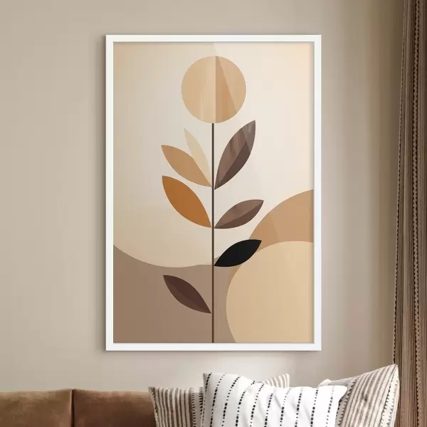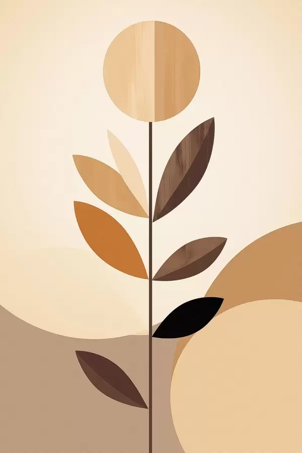 Plakat Stiliseeritud lill geomeetriliste lehtedega soojades toonides f46500