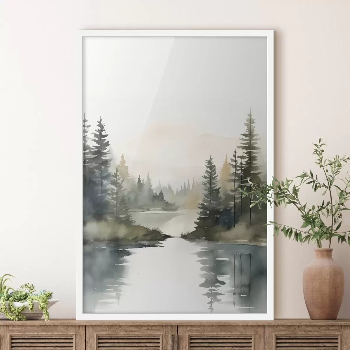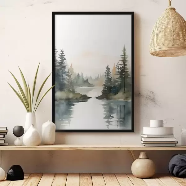 Poster Uduvihmane okasmets rahuliku jõe kohal, akvarellistiilis Nr f46507