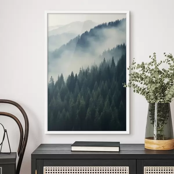 Plakat Udu okaspuude kaetud nõlvadel, sügavrohelised toonid f46516