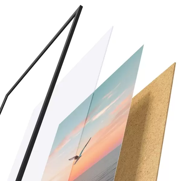 Plakat koosneb raamist, pleksiklaasist, trükitud pildist ja puitlaastplaadist alusplaadist. Tänu tagaküljel olevatele kinnitustele saab plakati kohe seinale riputada.