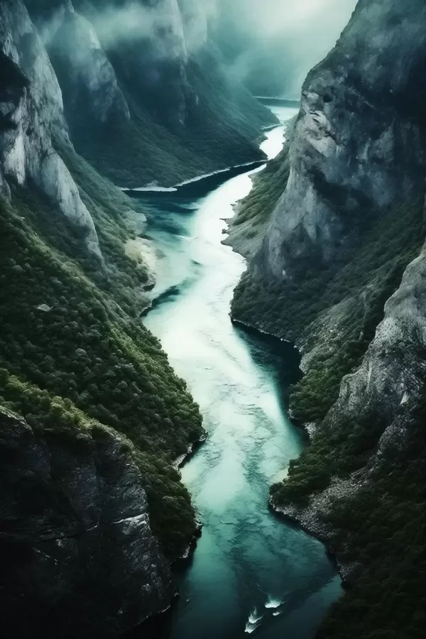Poster Kitsas kuristik, millest ülevalt voolab türkiissinine vesi Nr f46522