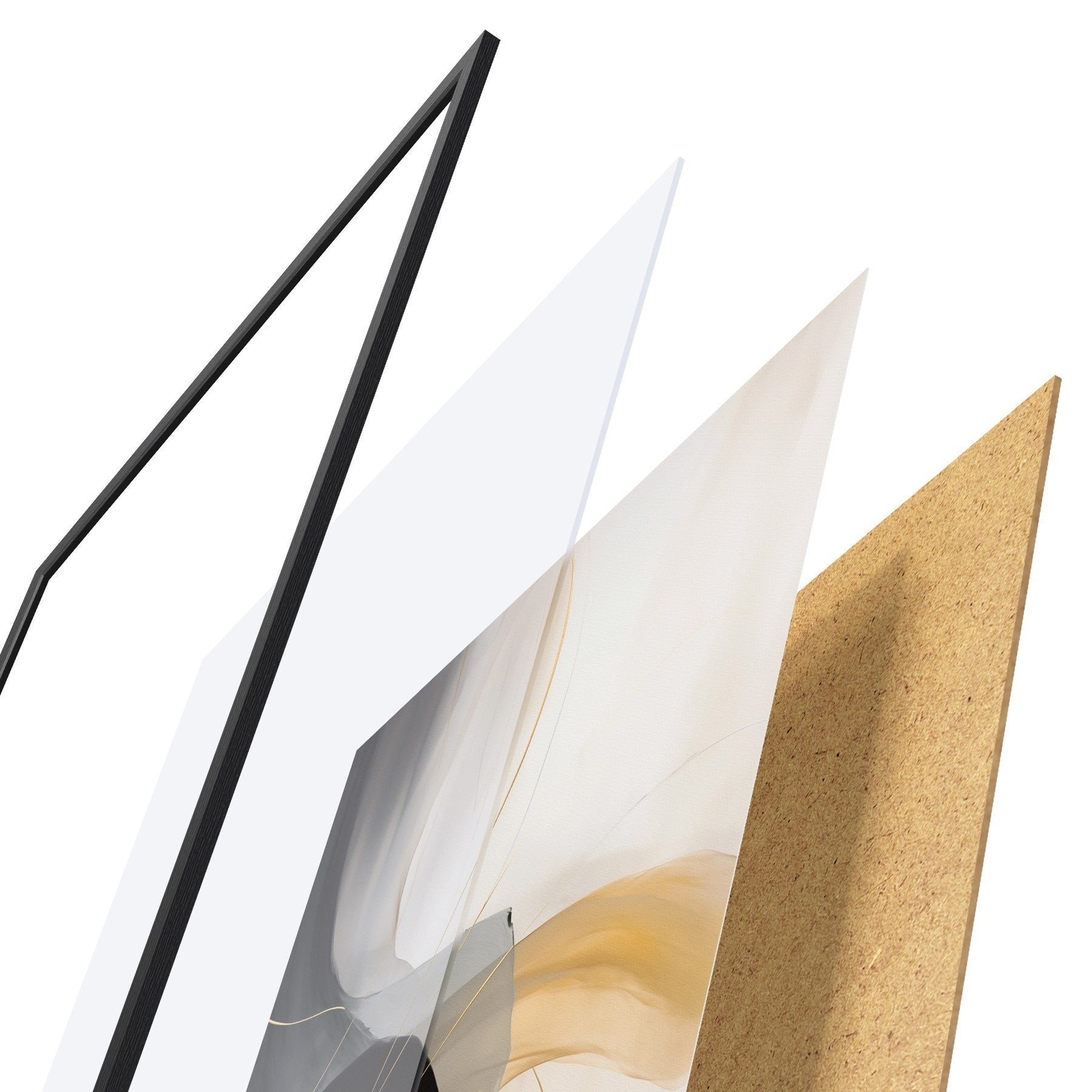Poster Pehmed kumerused mustas ja beežis sooja aktsendiga Nr f46542