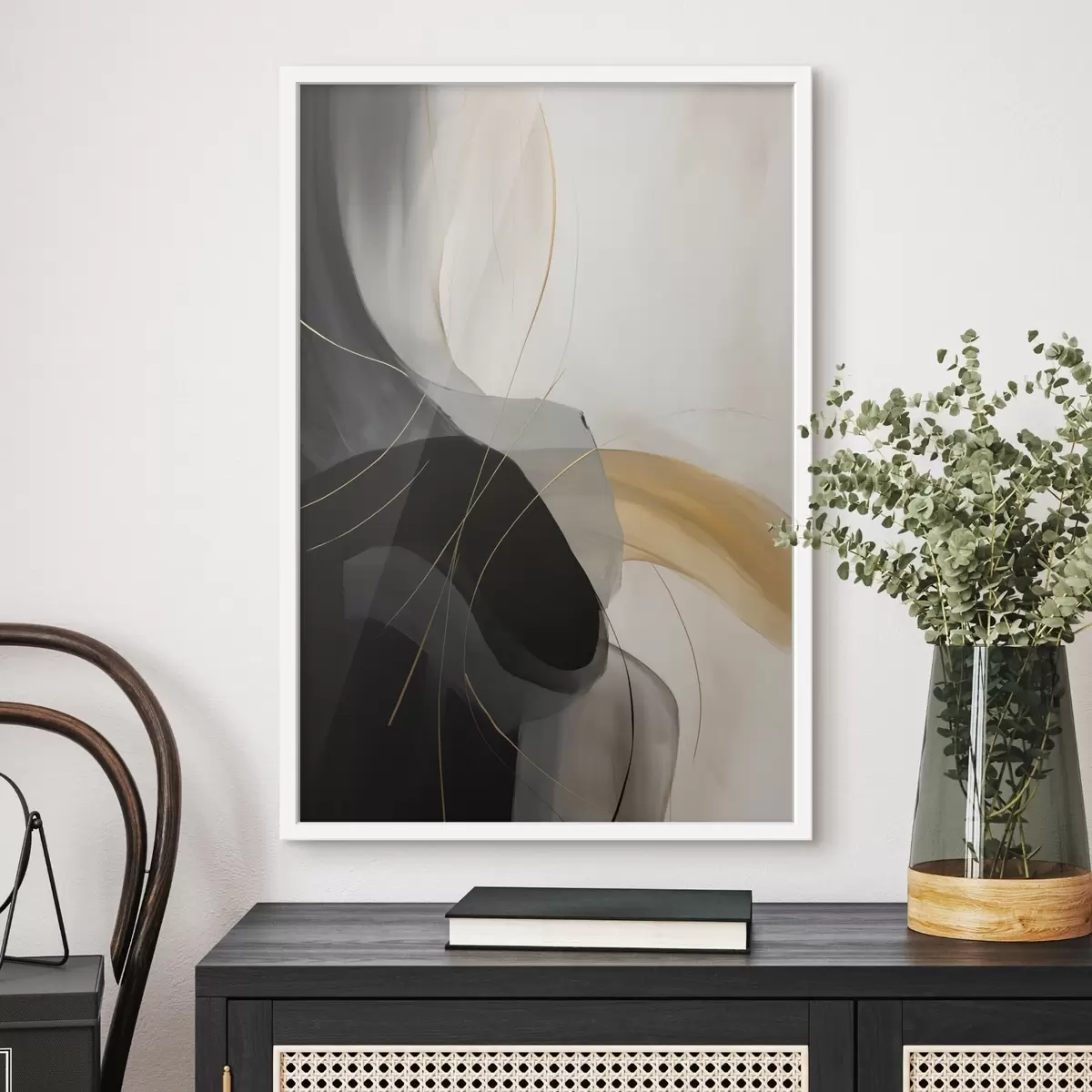 Poster Pehmed kumerused mustas ja beežis sooja aktsendiga Nr f46542