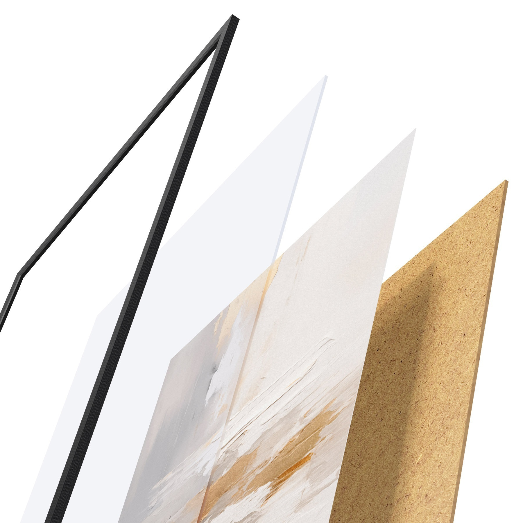 Poster Nude-toonilised jooned kontrastse musta ja okra kihiga Nr f46544