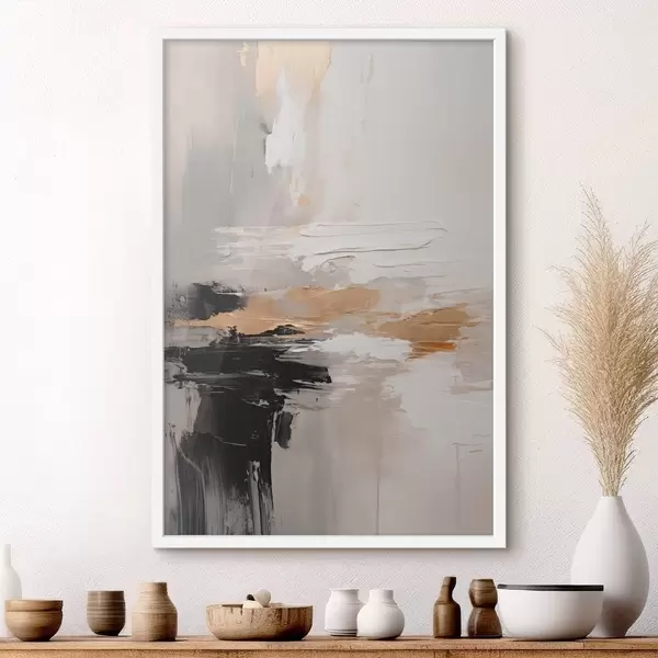Plakat Nude-toonilised jooned kontrastse musta ja okra kihiga f46544
