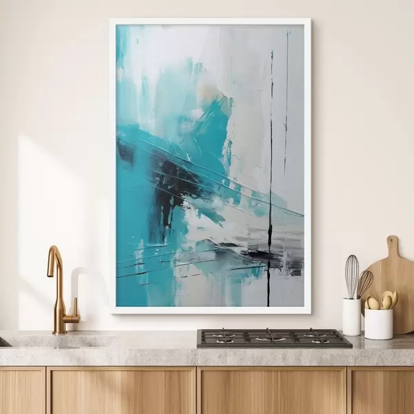 Poster Türkiissinised jooned valgel taustal ja must kriips Nr f46545