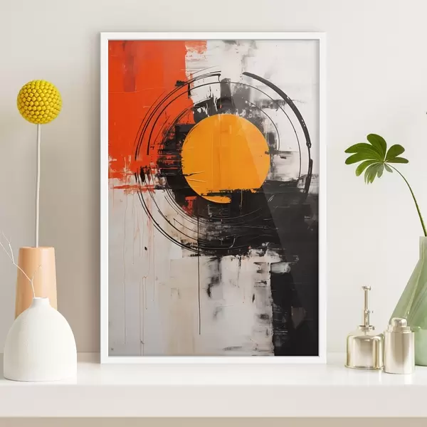 Poster Oranž ketas musta ringi sees, jooned ja pritsmed Nr f46550