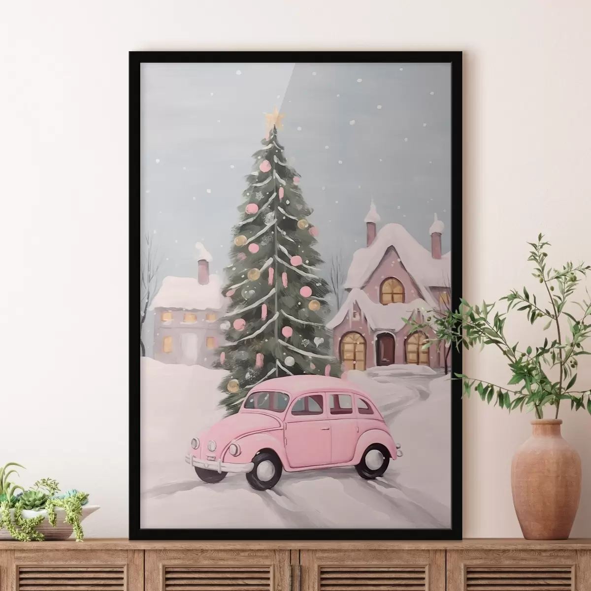 Poster Roosa auto ja kaunistatud jõulupuu maja ees Nr f46621