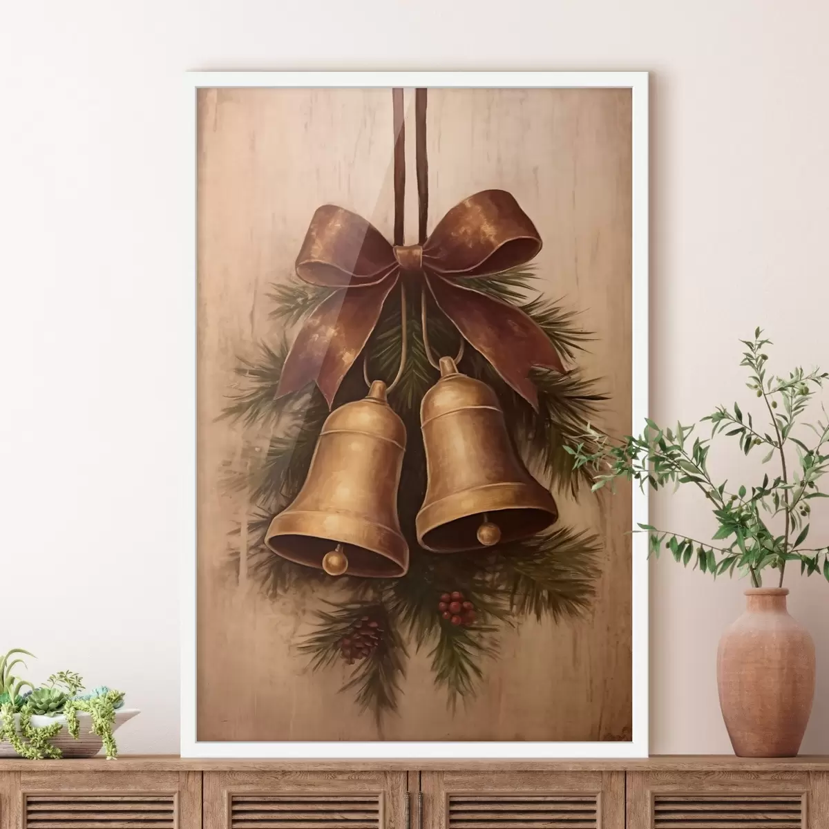 Poster Vintage jõuludekoratsioon kahe kellukese ja paelaga Nr f46626