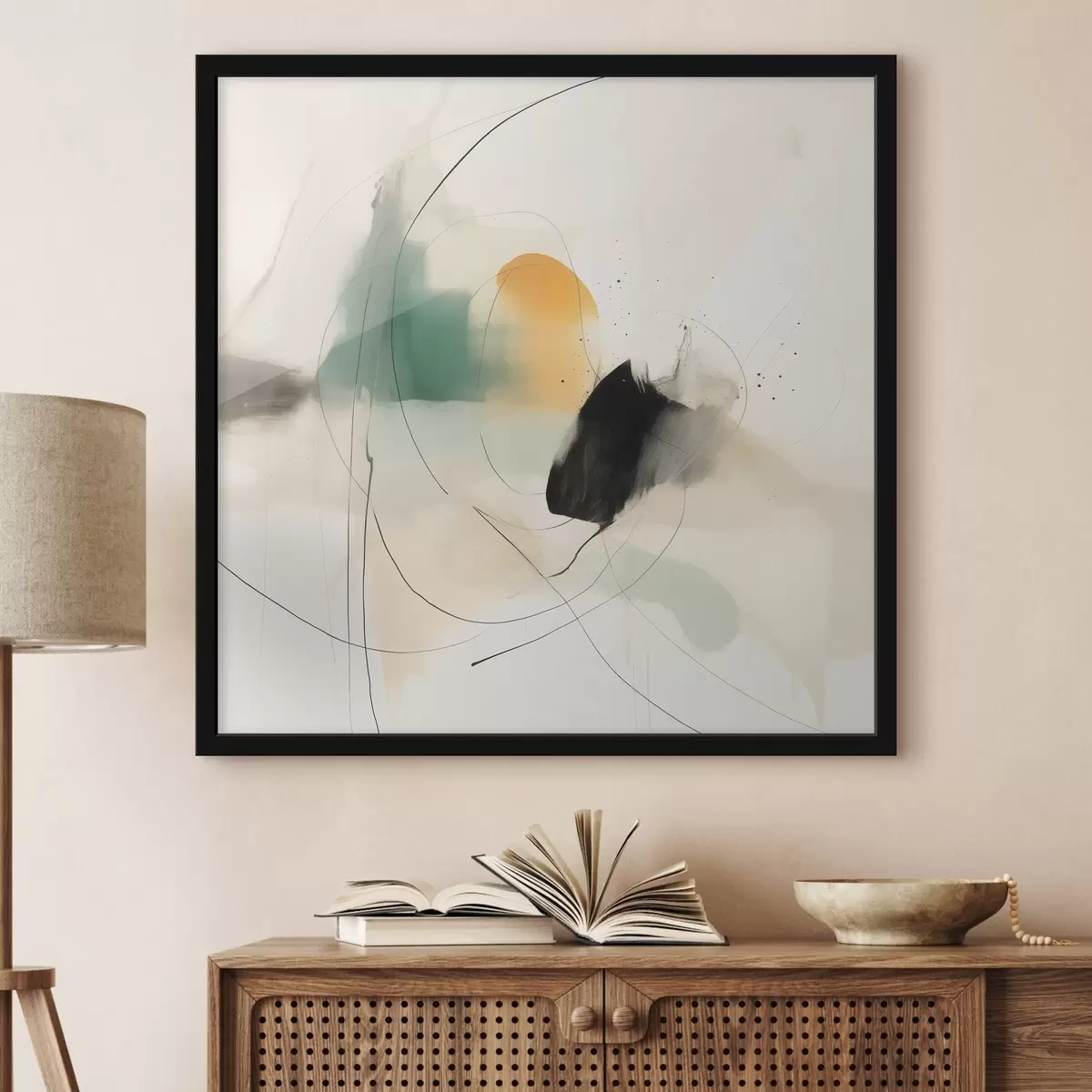 Plakat Õhulises abstraktses stiilis pehmed värvid ja jooned f46641