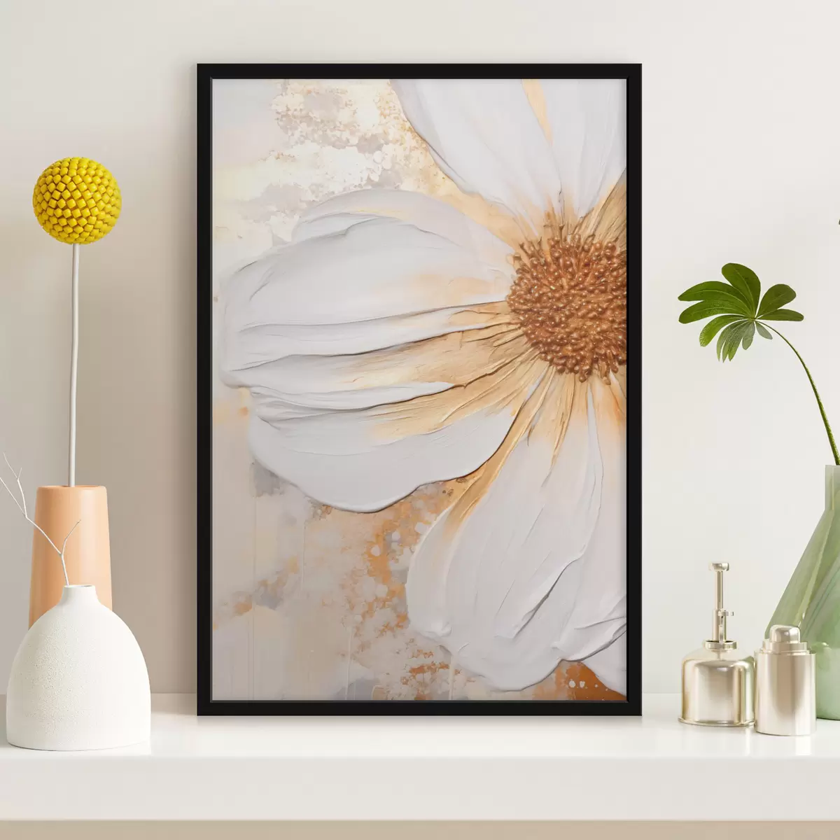Poster Valge õis õrnad õielehed, tekstuuriga abstraktne taust, elegantne, dekoratiivne kunst Nr f46692