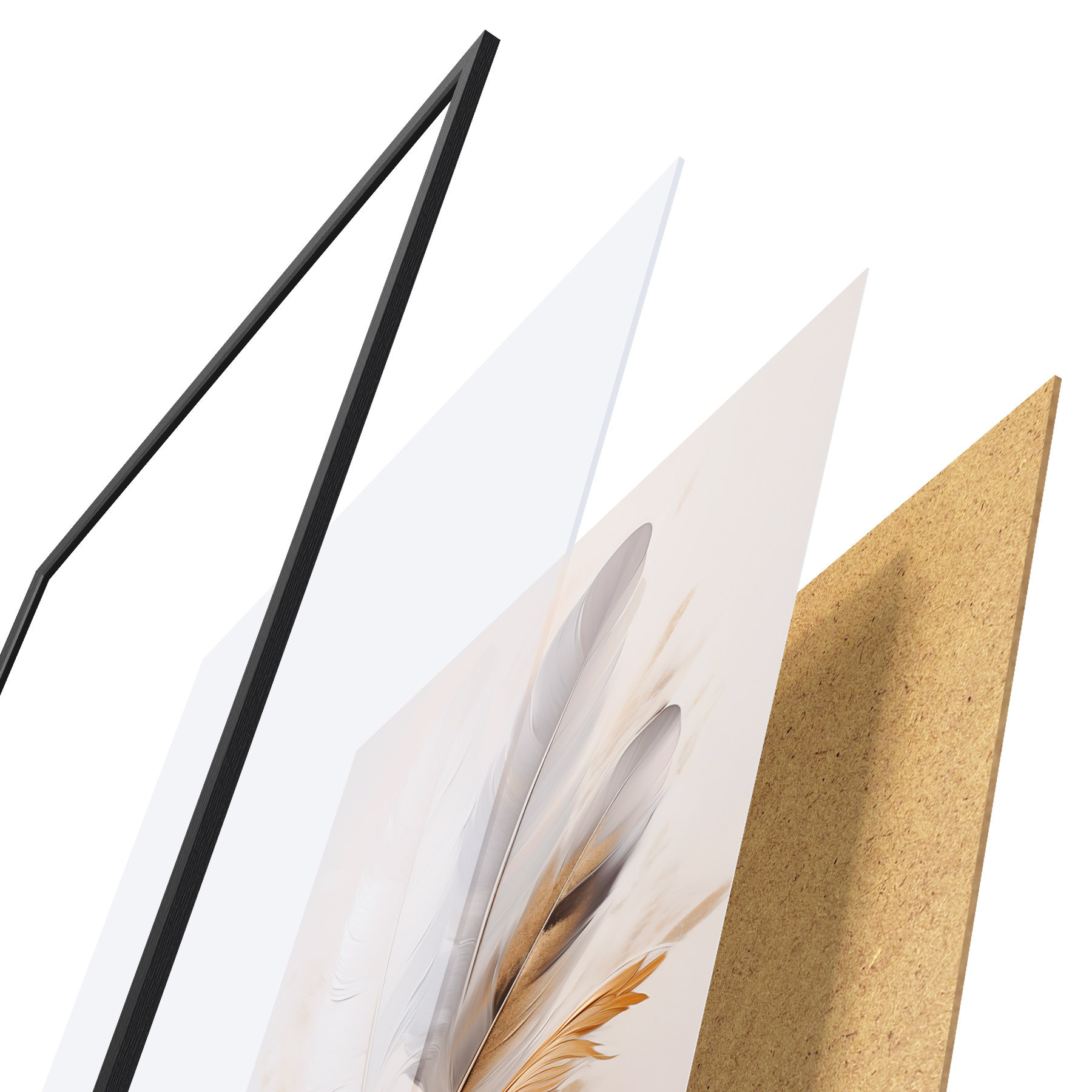 Plakat Abstraktsed suled, ümbritsetud beežide ja pruunide sulgedega, pehmed ja õrnad, helebeežil taustal f46712