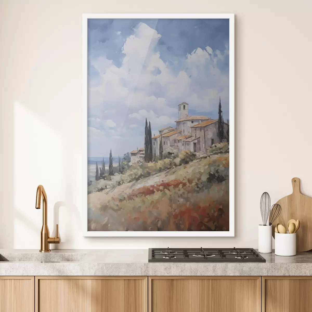 Me müüme pilte kanderaamidel - see on puidust raam, millele lõuend on pingutatud. Seda pilti ei ole vaja raamida, seda võib riputada otse seinale.