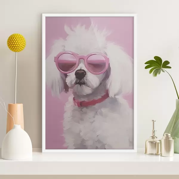 Plakat Prillidega väike koer on maali imitatsioon. f46722