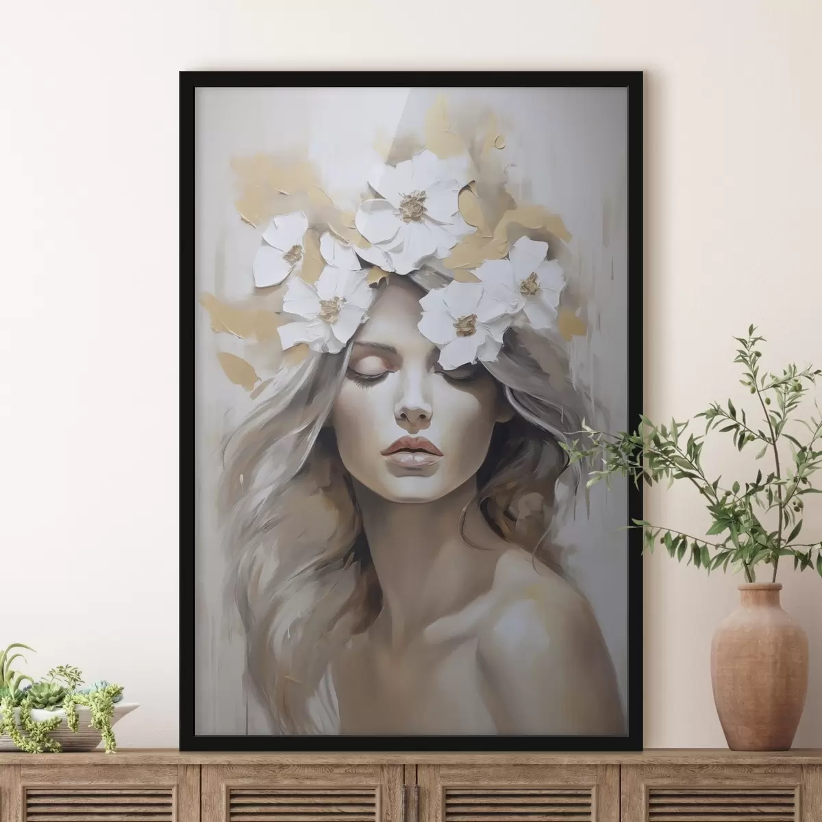 Poster Lilledega tüdruku abstraktne portree Nr f46757