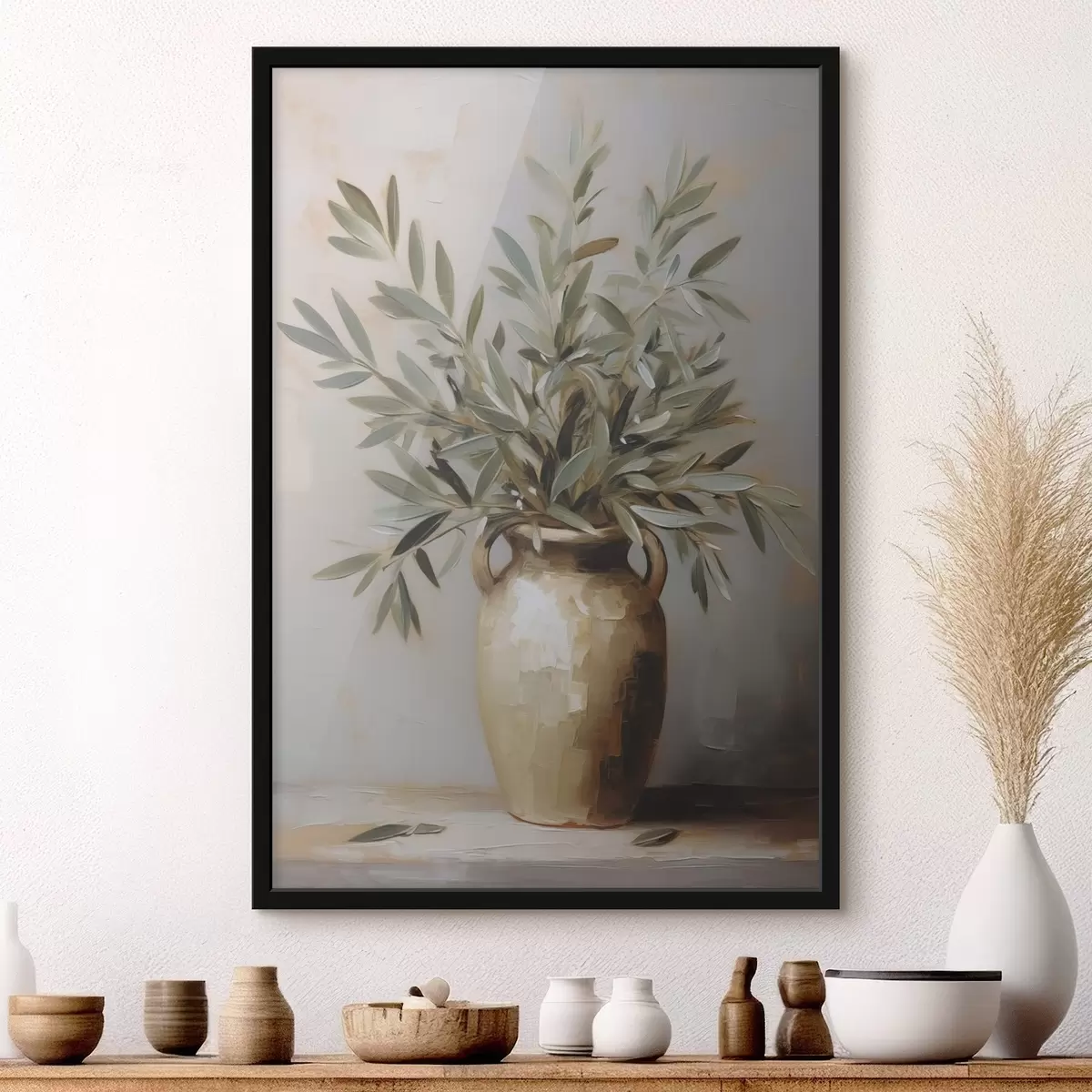 Plakat Oliivipuu oksad vaasis imitatsioonmaal f46758