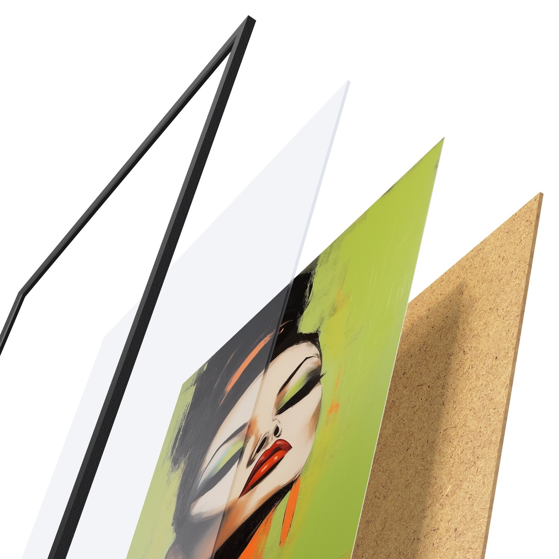 Plakat koosneb raamist, pleksiklaasist, trükitud pildist ja puitlaastplaadist alusplaadist. Tänu tagaküljel olevatele kinnitustele saab plakati kohe seinale riputada.