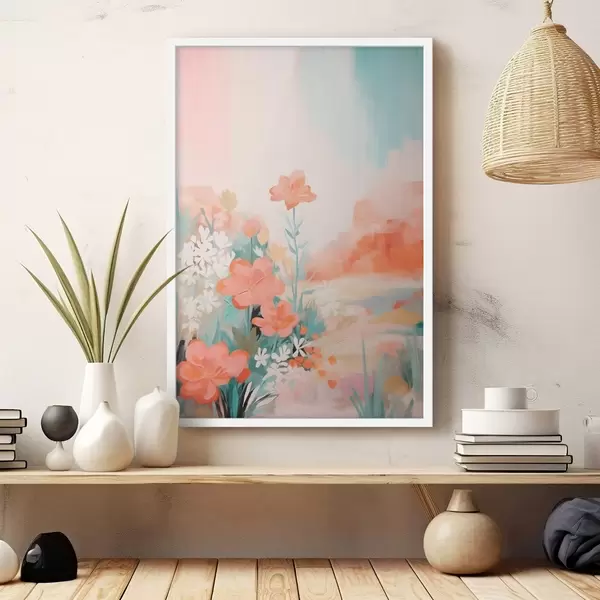 Plakat Abstraktne lillemaastik roosa-sinises värvipalettis f46932