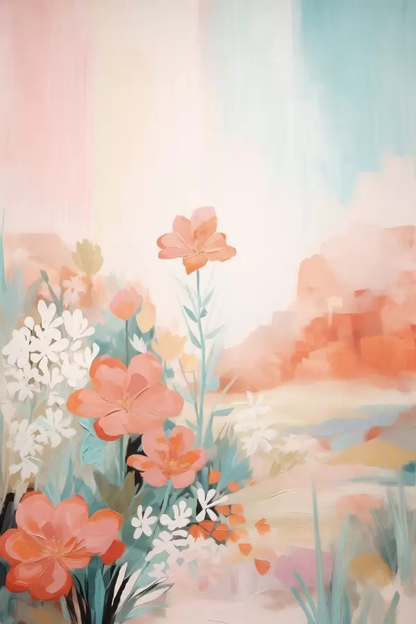 Plakat Abstraktne lillemaastik roosa-sinises värvipalettis f46932